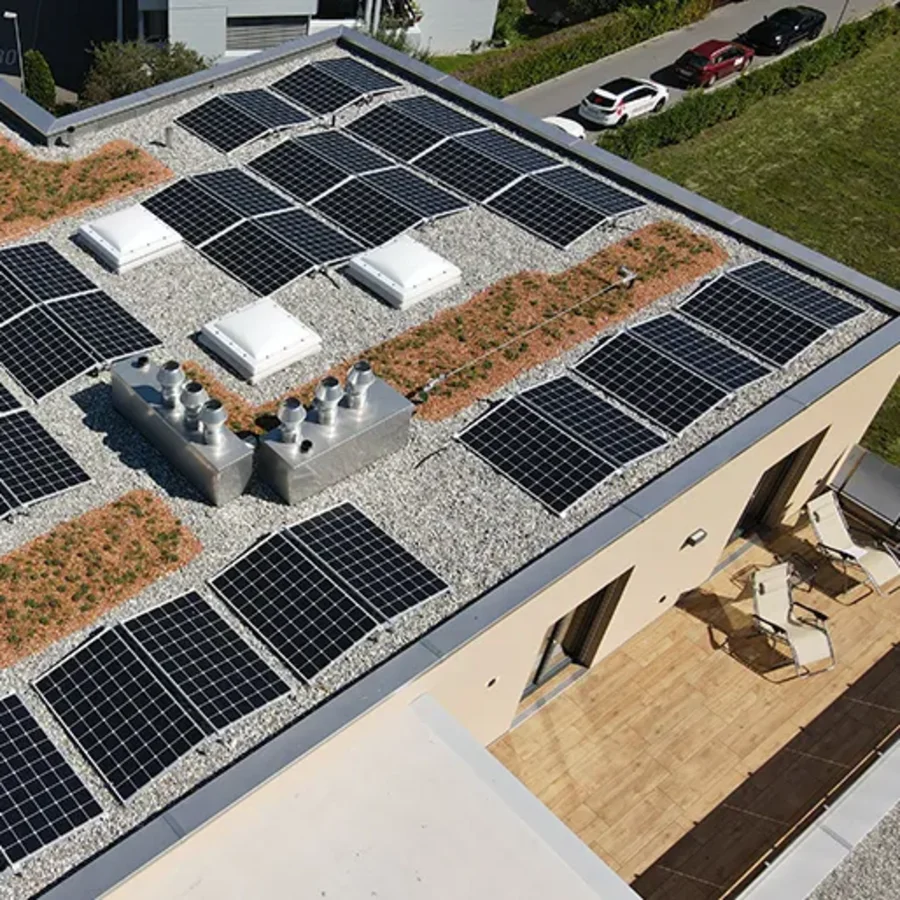 Unser Umwelt-Paket ergänzt dein Haus mit effizienten, ressourcenschonenden Systemen. Solaranlagen, Wärmepumpen und kontrollierte Lüftung sorgen für frische Luft und ein angenehmes Raumklima.