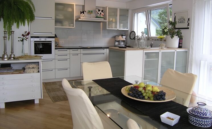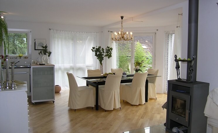 - Gedeckter Sitzplatz und übers Eck offener Wohnraum