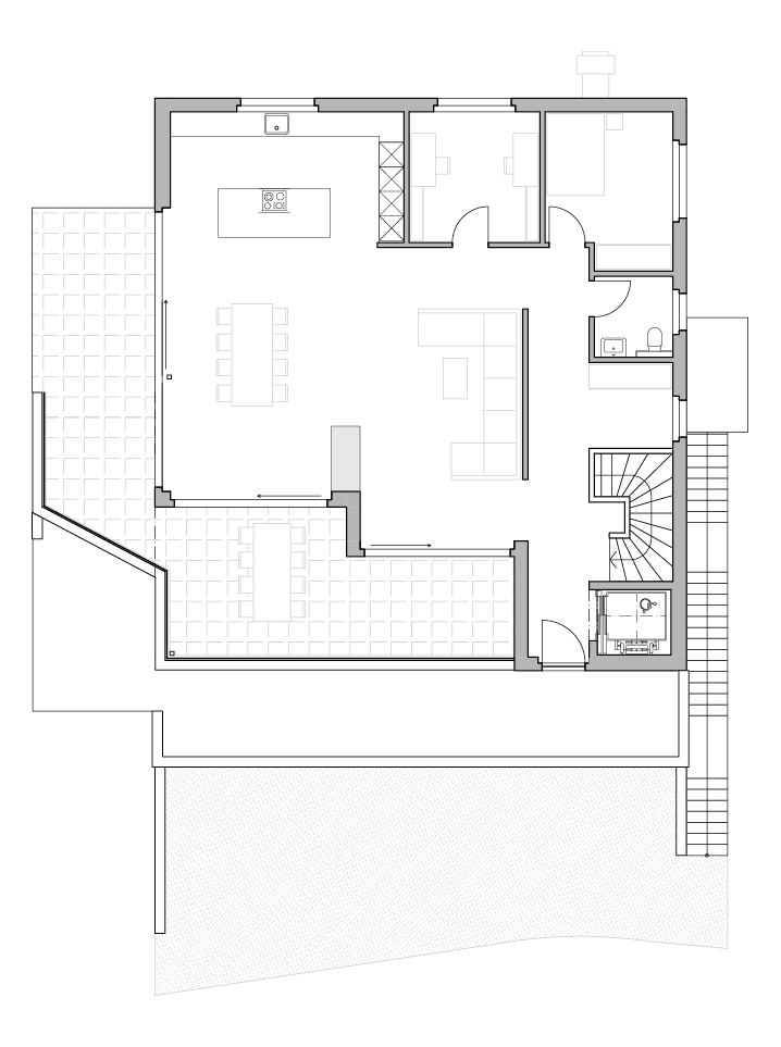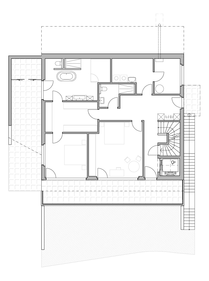 - Kinderzimmer mit Bad, Nebenräume und Hauseingang